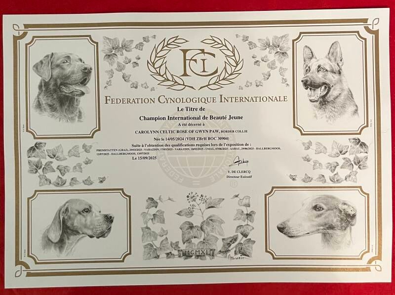 2025 haben zwei Hündinnen aus dem Kennel of Gwyn Paw Internationale Championtitel errungen: